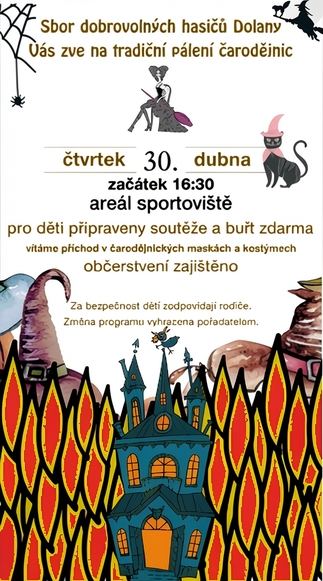 SDH Dolany a OÚ Dolany Vás zvou na dolanské pálení čarodějnic.