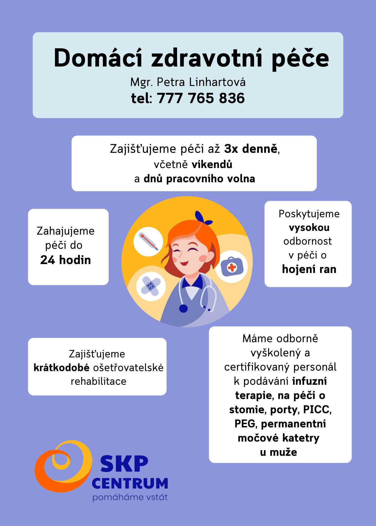 SKP CENTRUM nabízí službu Domácí zdravotní péče. Bližší informace naleznete v přiloženém letáku.